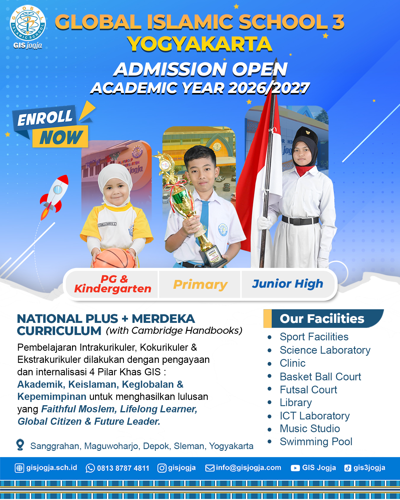 Sekolah harus menjadi rumah yang nyaman bagi peserta didik untuk mentransfer pengetahuan, nilai-nilai dan mengembangkan potensi sehingga menjadi pemenang di masa depan. Primary GIS 3 Jogja mempunyai 4 pilar untuk memaksimalkan dan mengembangkan potensi peserta didik.
