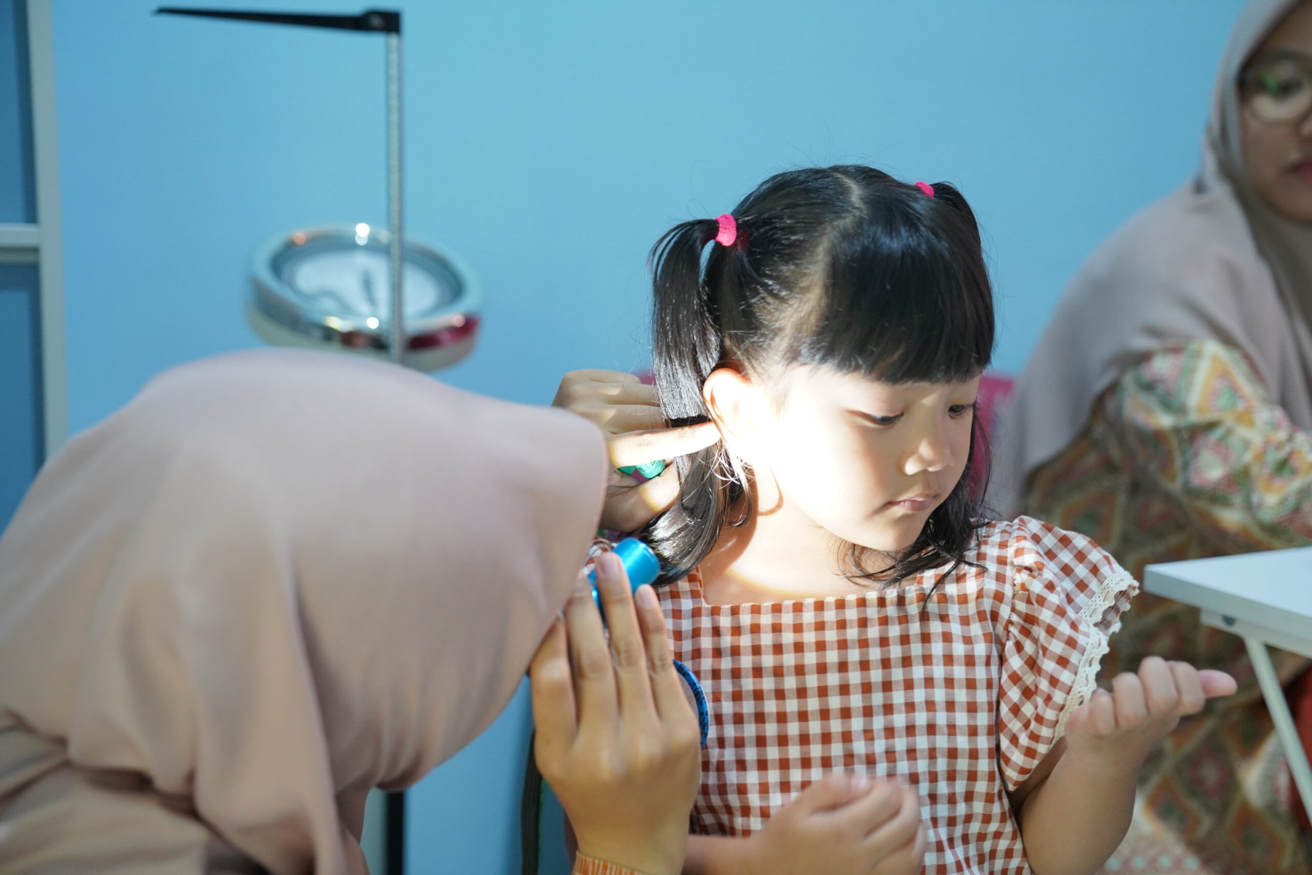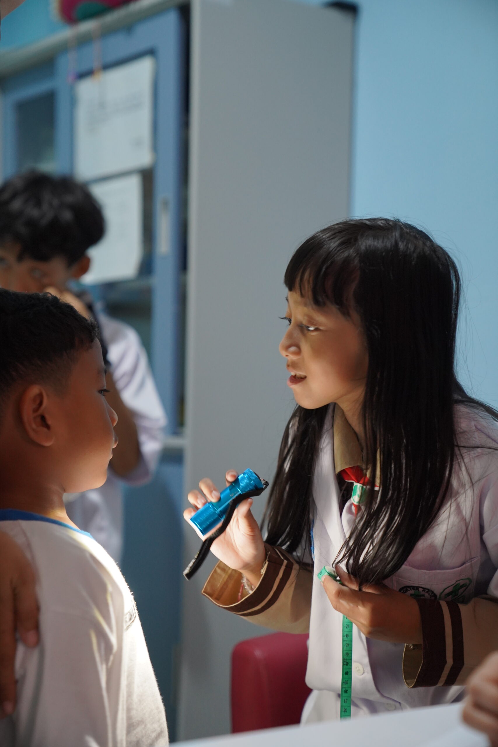 Dengan senter kecil, para dokcil melakukan pemeriksaan kebersihan telinga. Tak ketinggalan, kebersihan kuku juga diperiksa. Meski terlihat sepele, telinga dan kuku adalah bagian tubuh yang harus selalu dijaga kebersihannya.