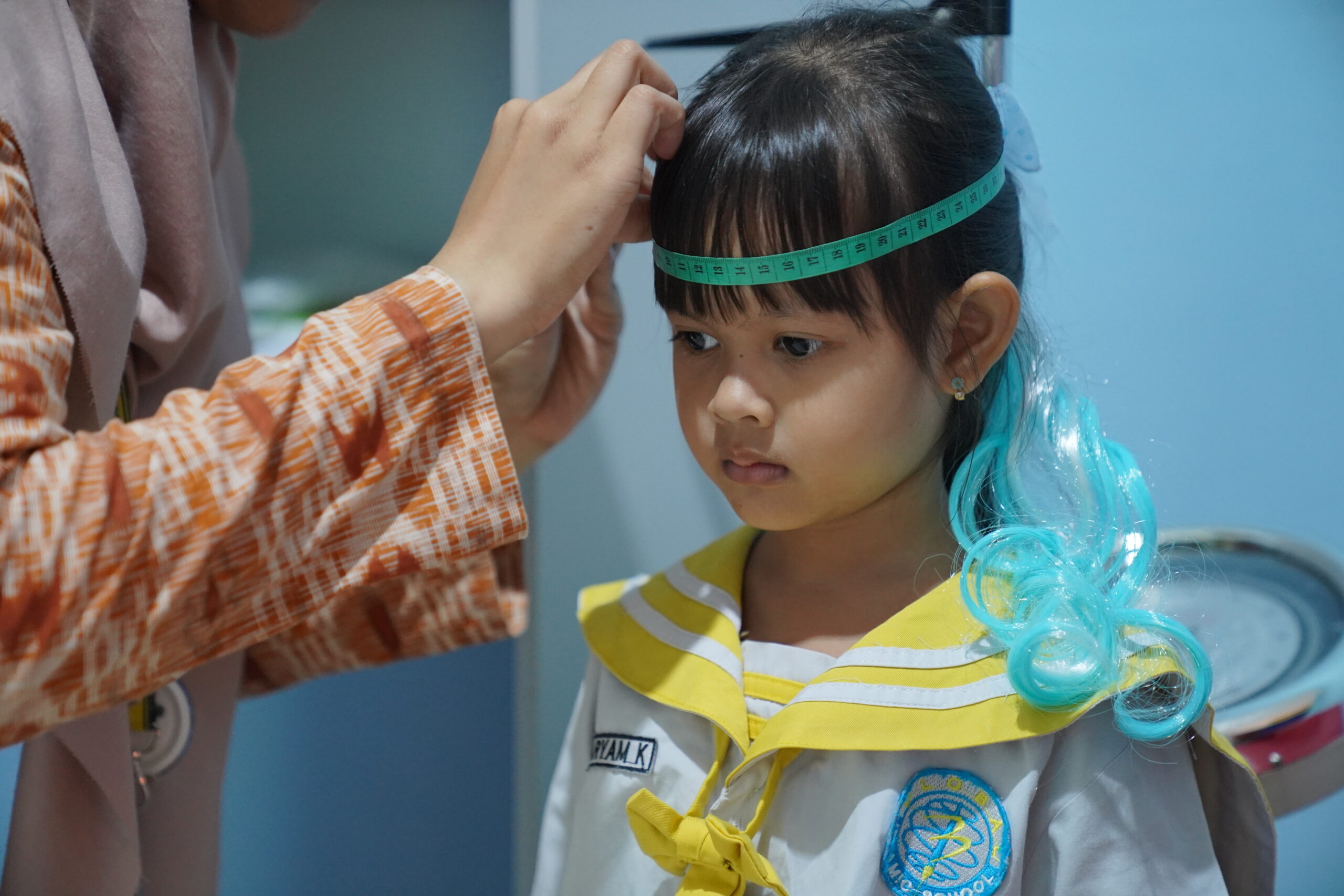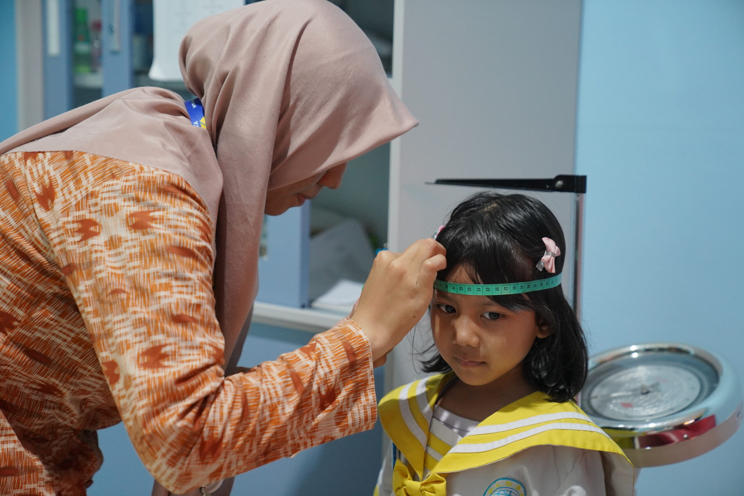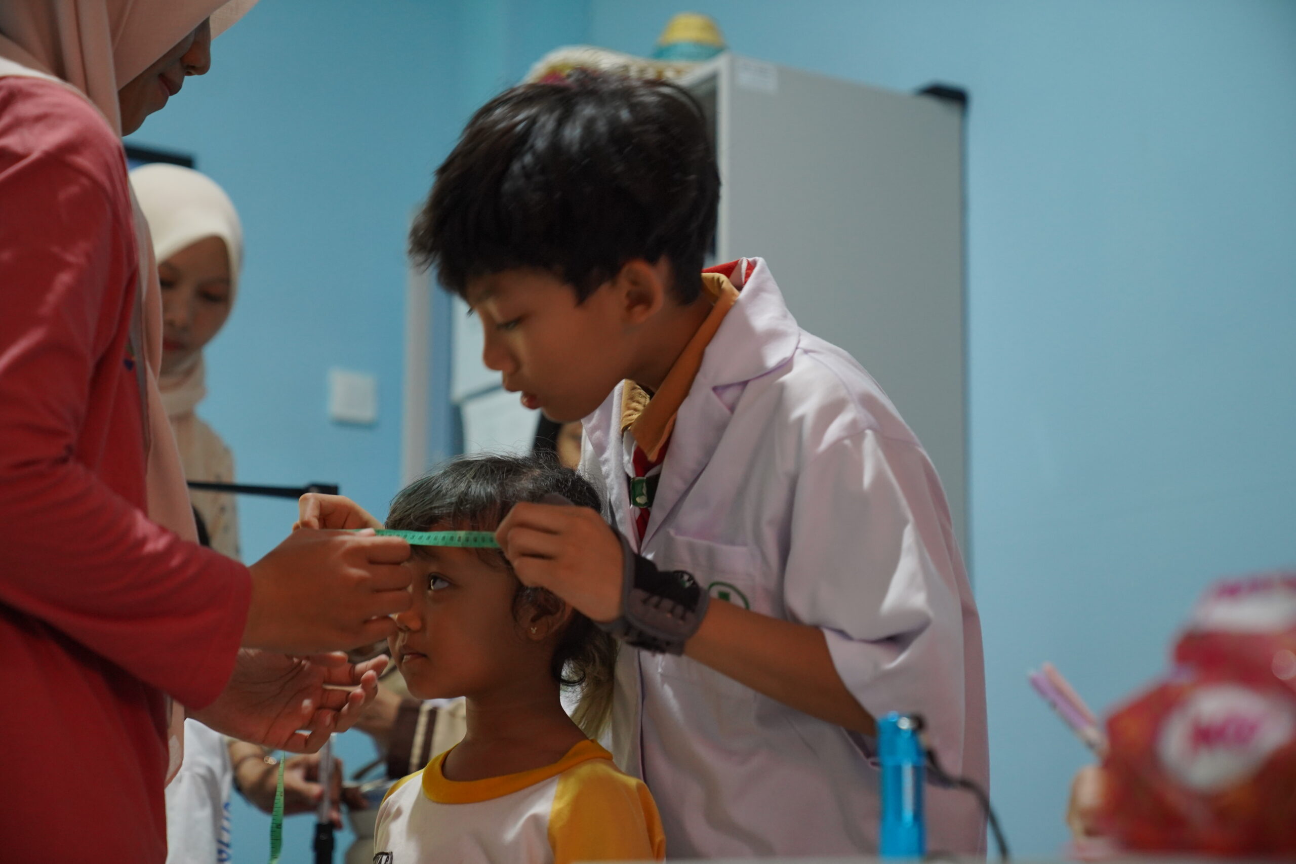 Mata mereka jeli mengamati angka-angka yang tertera pada timbangan, stadiometer, dan meteran, melihat hasil pengukuran berat dan tinggi badan serta lingkar kepala siswa PG-K. Praktik ini melatih siswa menjadi lebih teliti dan cermat dalam melihat segala sesuatu.