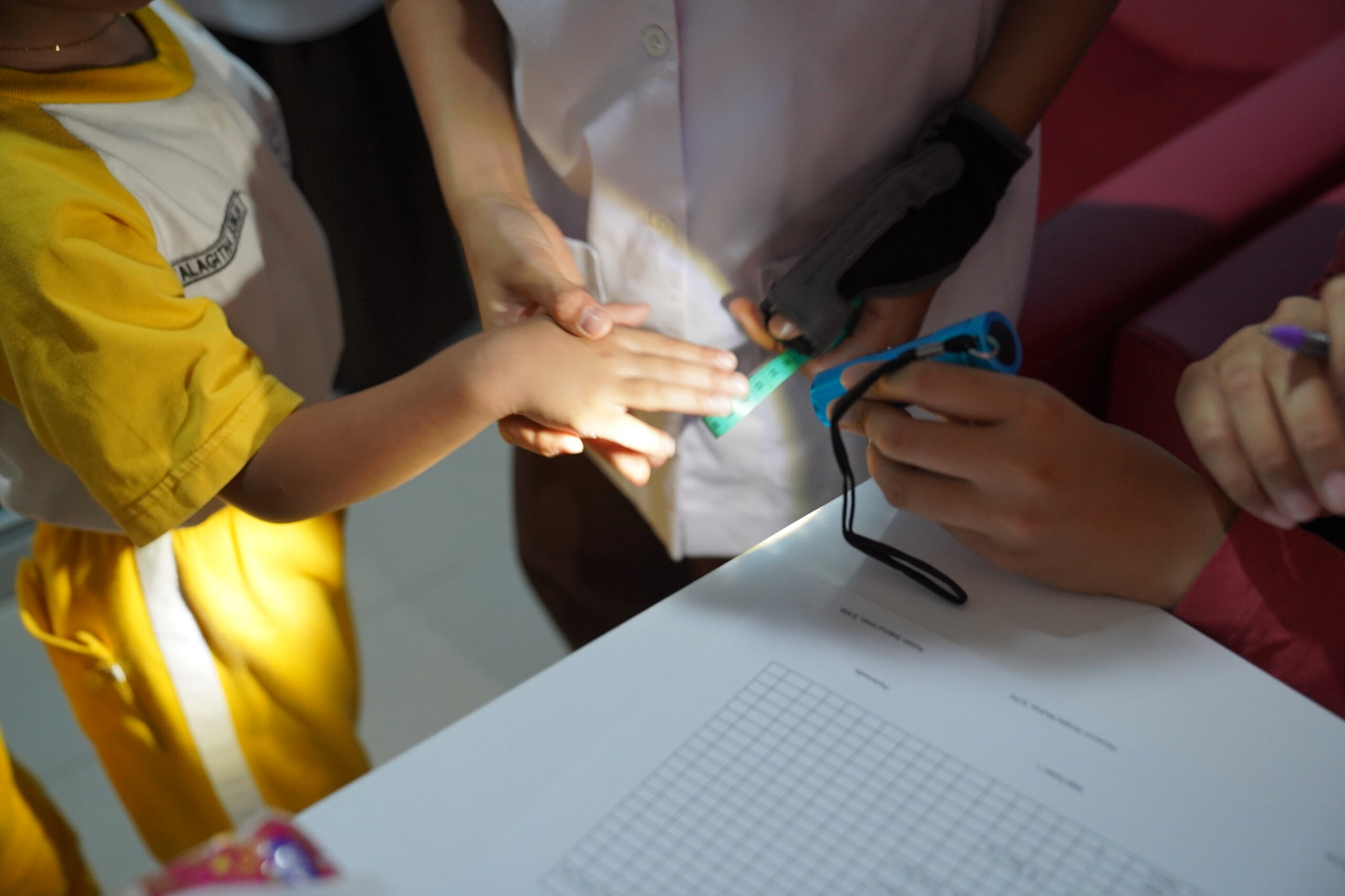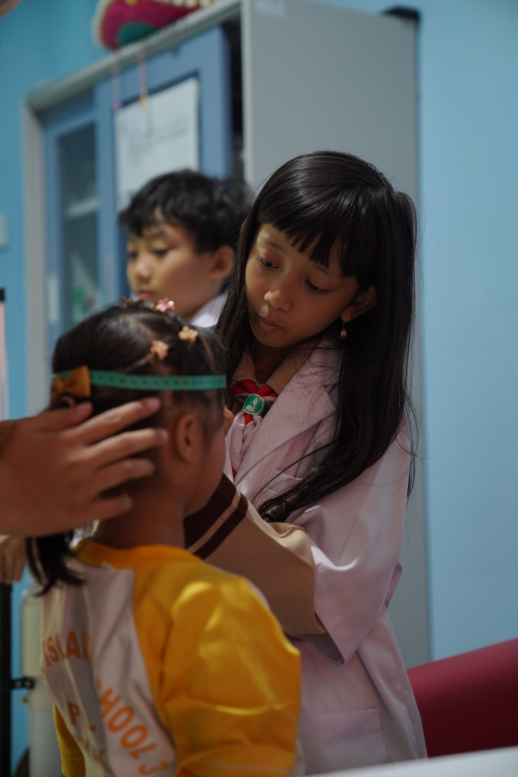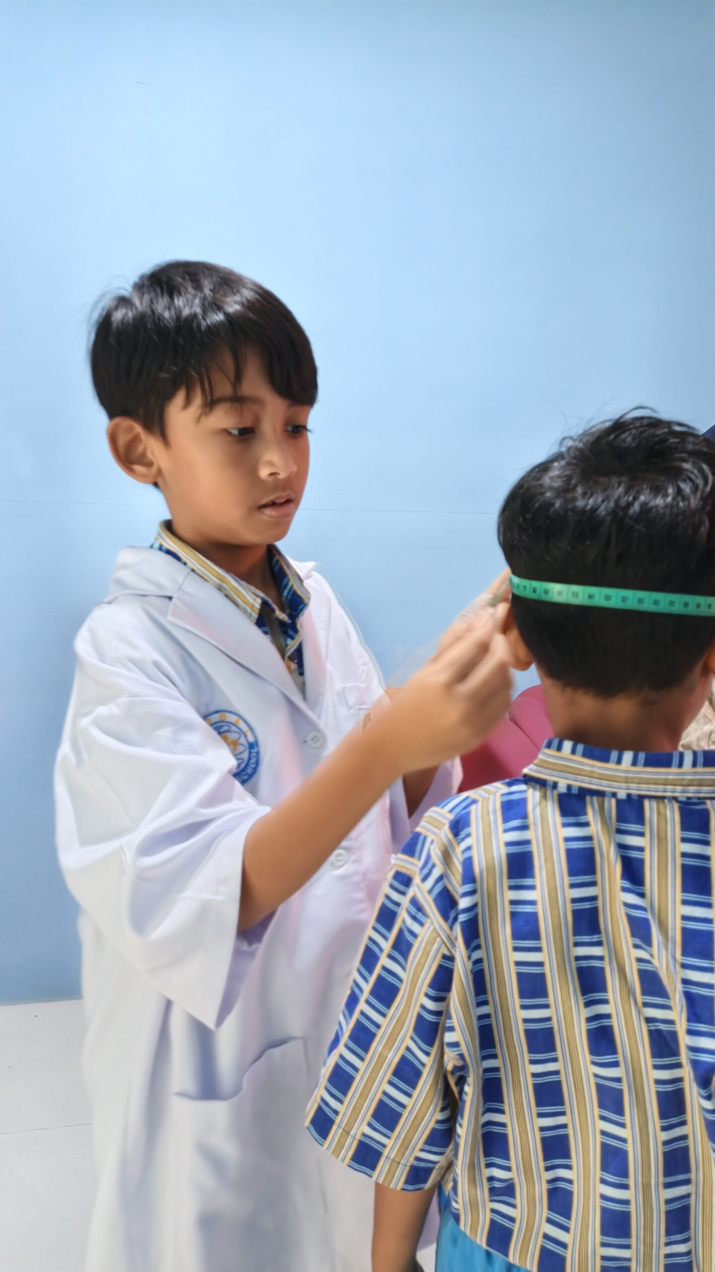 Mata mereka jeli mengamati angka-angka yang tertera pada timbangan, stadiometer, dan meteran, melihat hasil pengukuran berat dan tinggi badan serta lingkar kepala siswa PG-K. Praktik ini melatih siswa menjadi lebih teliti dan cermat dalam melihat segala sesuatu.