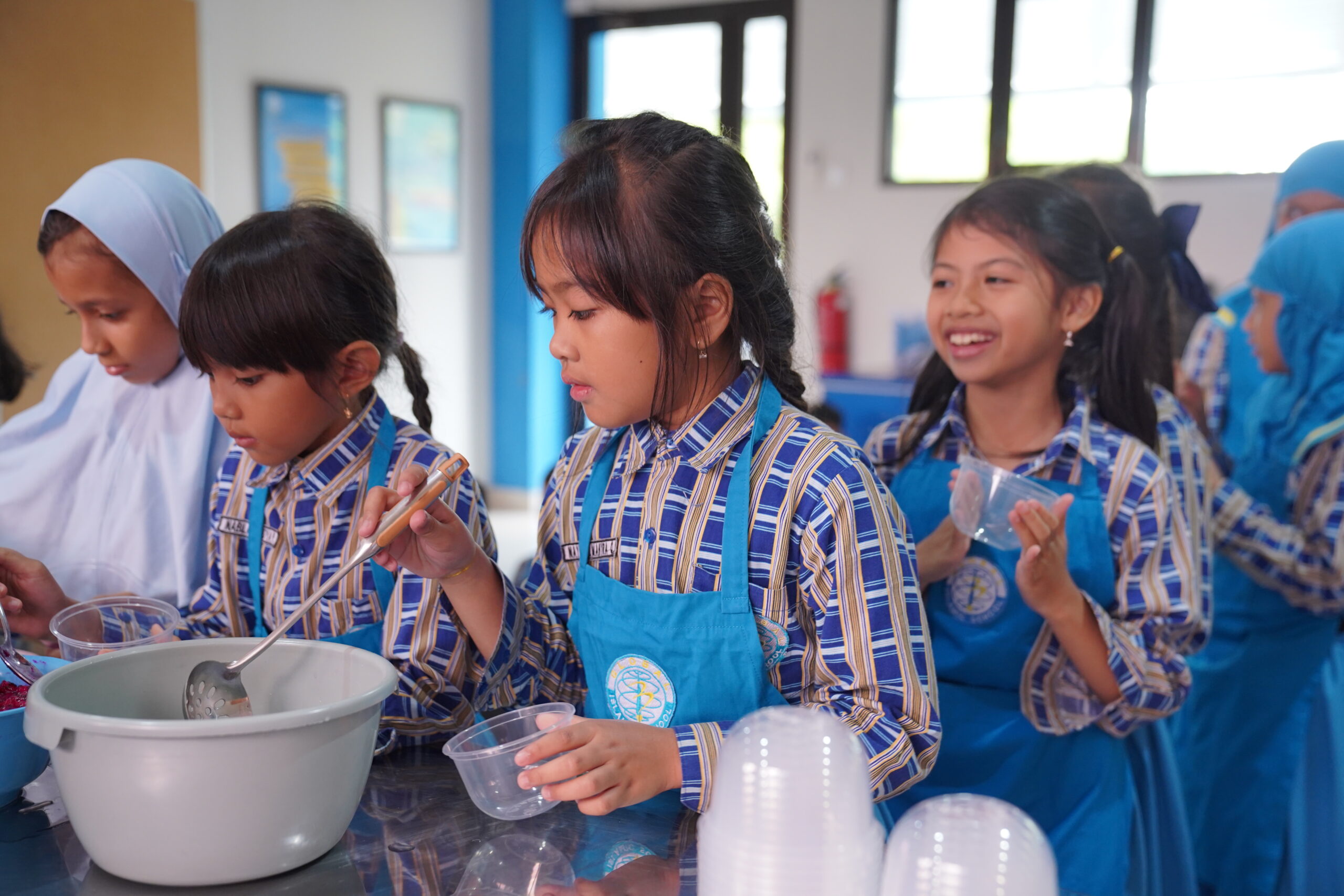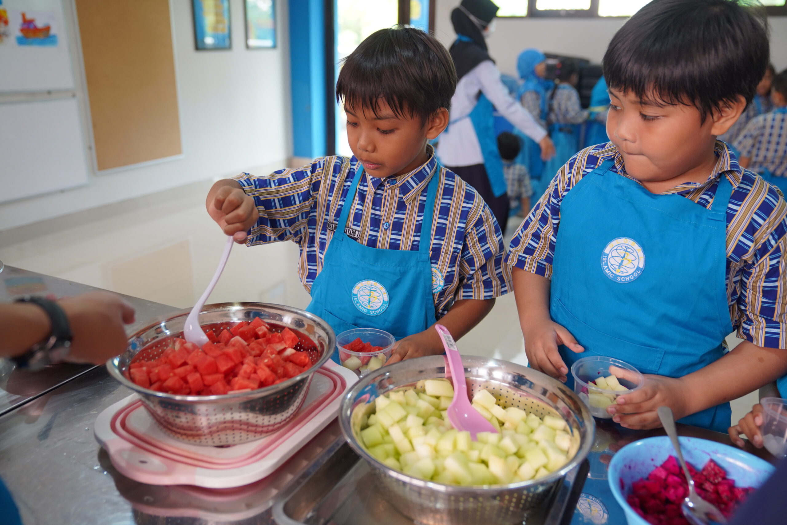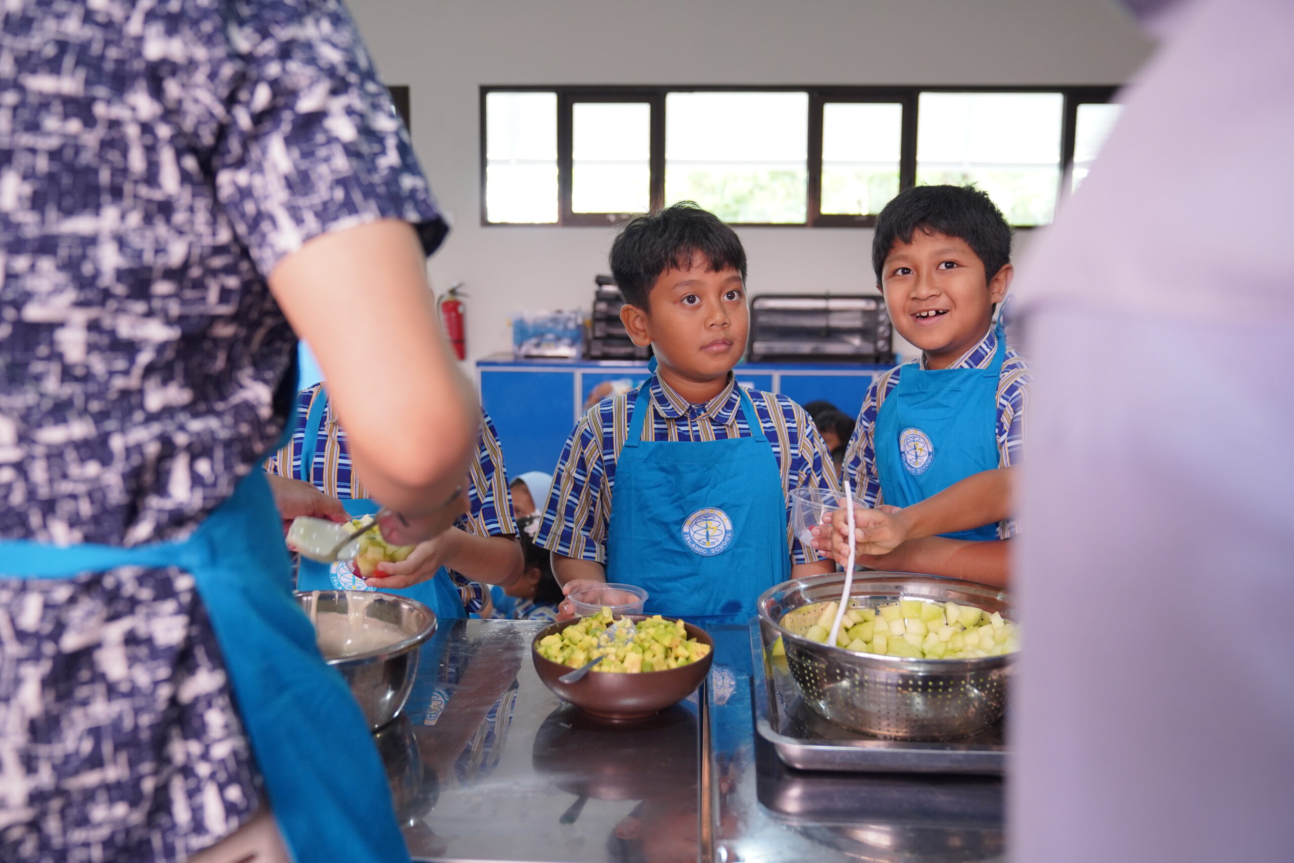 Kegiatan Fun Cooking hari ini terbagi menjadi dua sesi. Sesi pertama, pukul 09.10–10.10 WIB untuk kelas 2A dan 2B. Setelah jeda 30 menit, dilanjutkan dengan kelas 2C dan 2D pada pukul 10.40–11.40 WIB. Pembagian sesi ini dilakukan agar setiap siswa memperoleh kesempatan dan atensi yang sama dari pendampingnya sehingga tidak ada yang tertinggal.