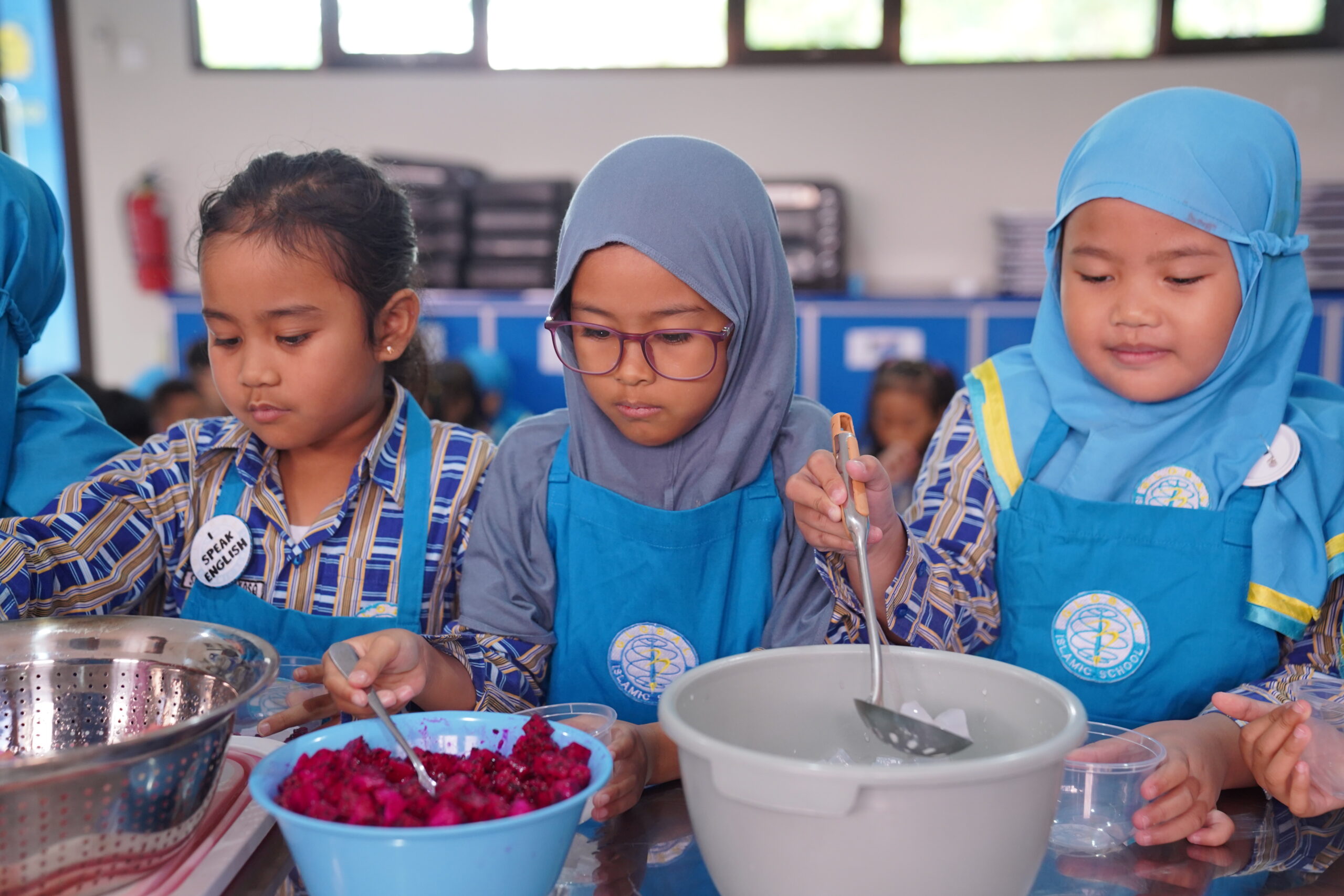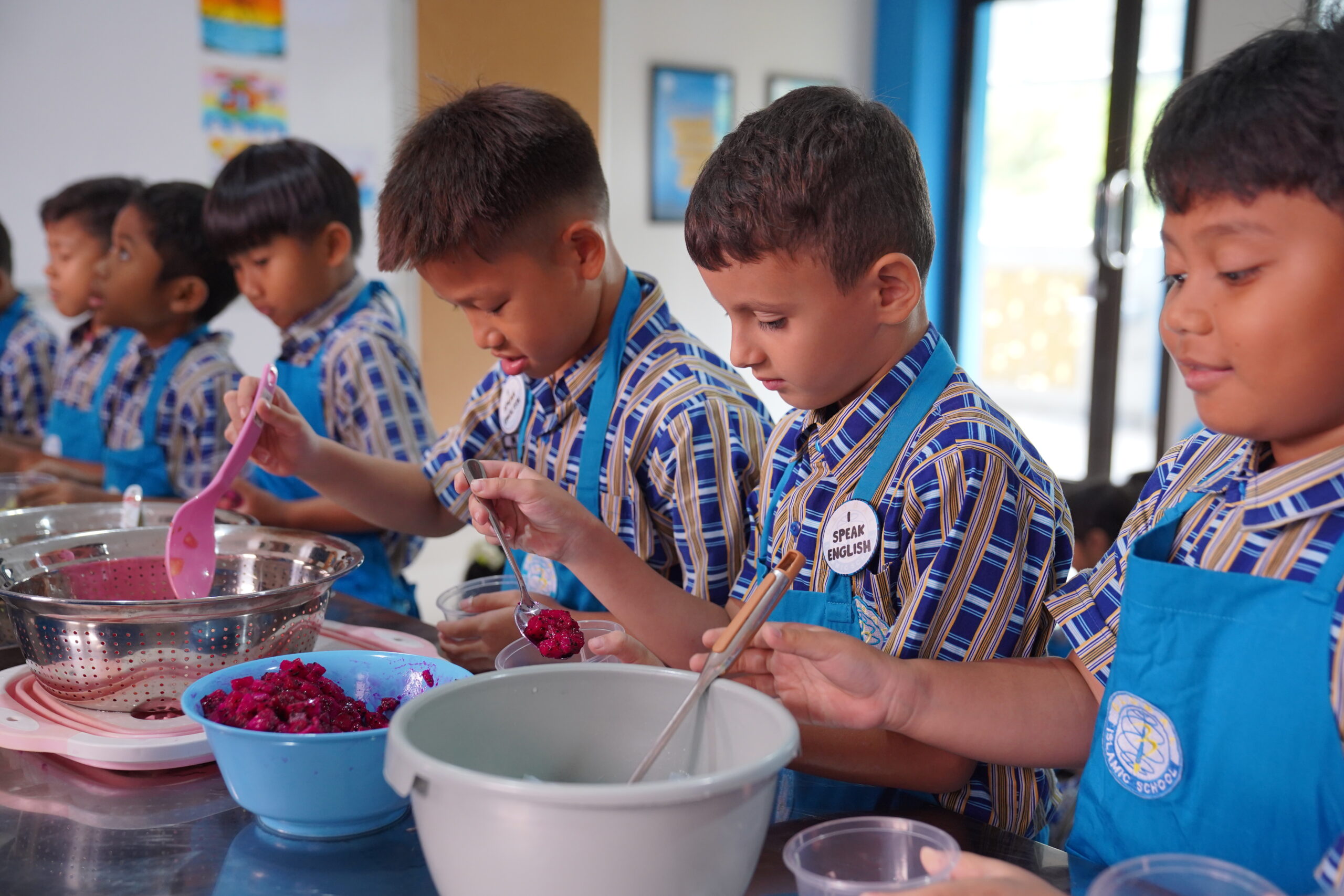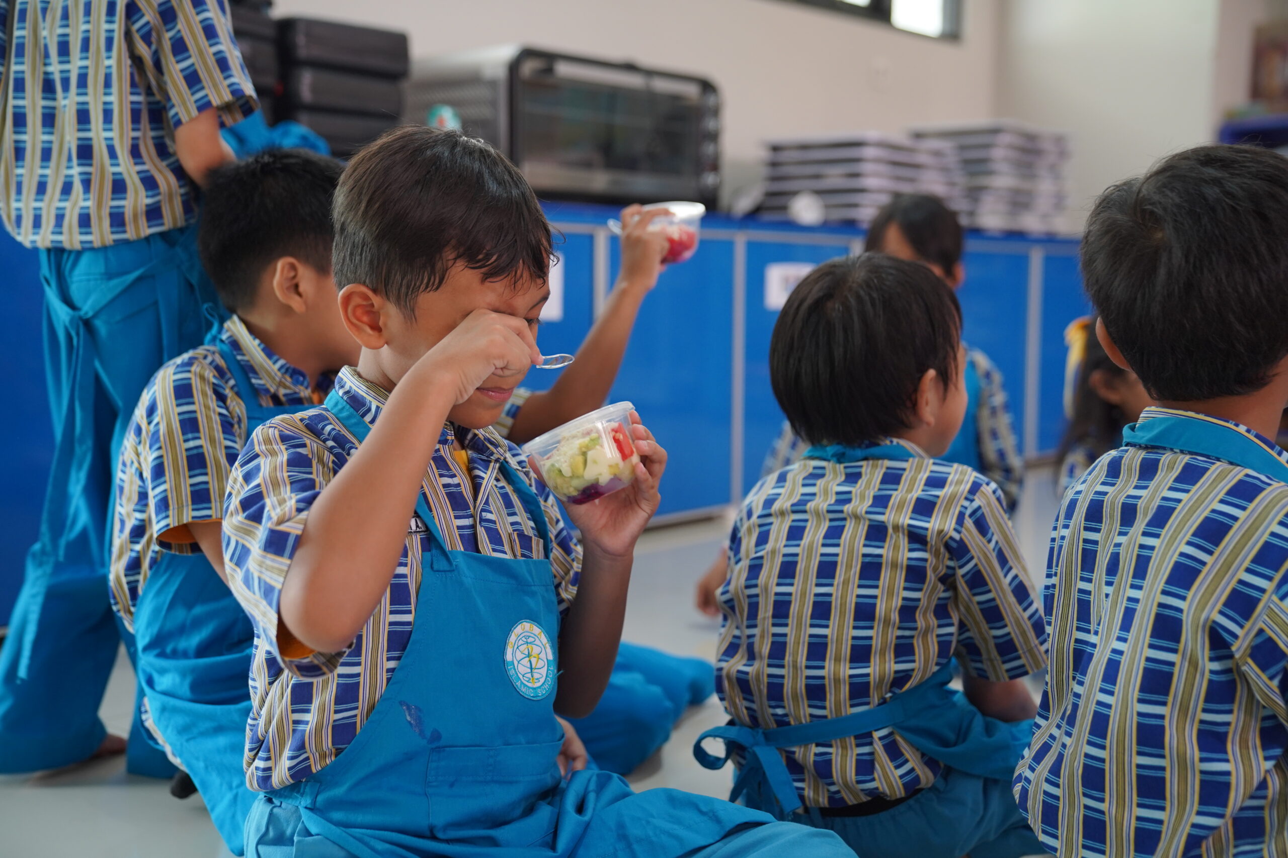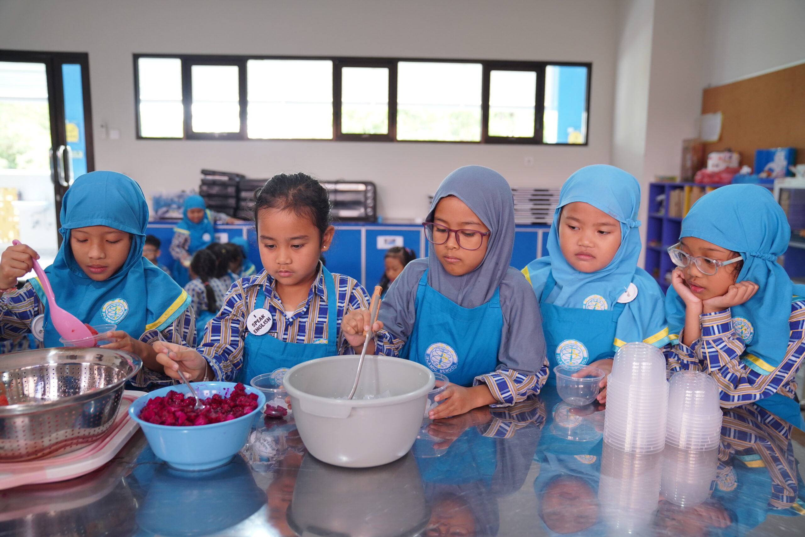 Kegiatan Fun Cooking hari ini terbagi menjadi dua sesi. Sesi pertama, pukul 09.10–10.10 WIB untuk kelas 2A dan 2B. Setelah jeda 30 menit, dilanjutkan dengan kelas 2C dan 2D pada pukul 10.40–11.40 WIB. Pembagian sesi ini dilakukan agar setiap siswa memperoleh kesempatan dan atensi yang sama dari pendampingnya sehingga tidak ada yang tertinggal.