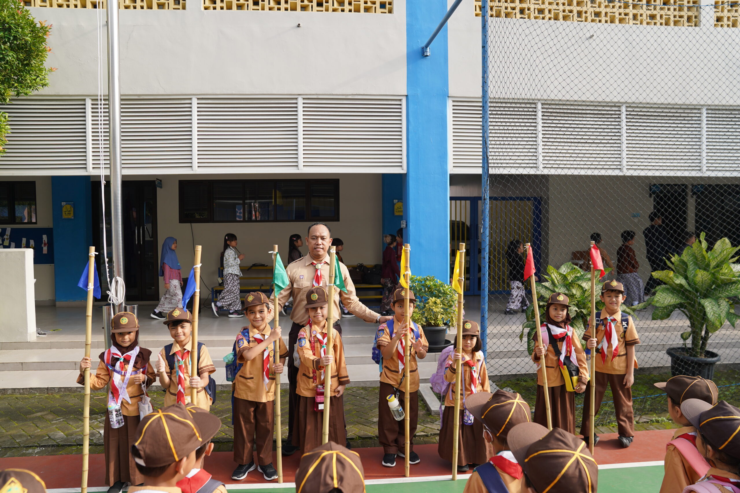 Sebelum berangkat ke Kampung Flory, siswa-siswi terlebih dulu briefing di lapangan basket sekolah. Mereka berbaris rapi sesuai barung sembari mendengarkan pengarahan dari Mr. Adam selaku wakil kepala sekolah Primary GIS 3 Jogja.