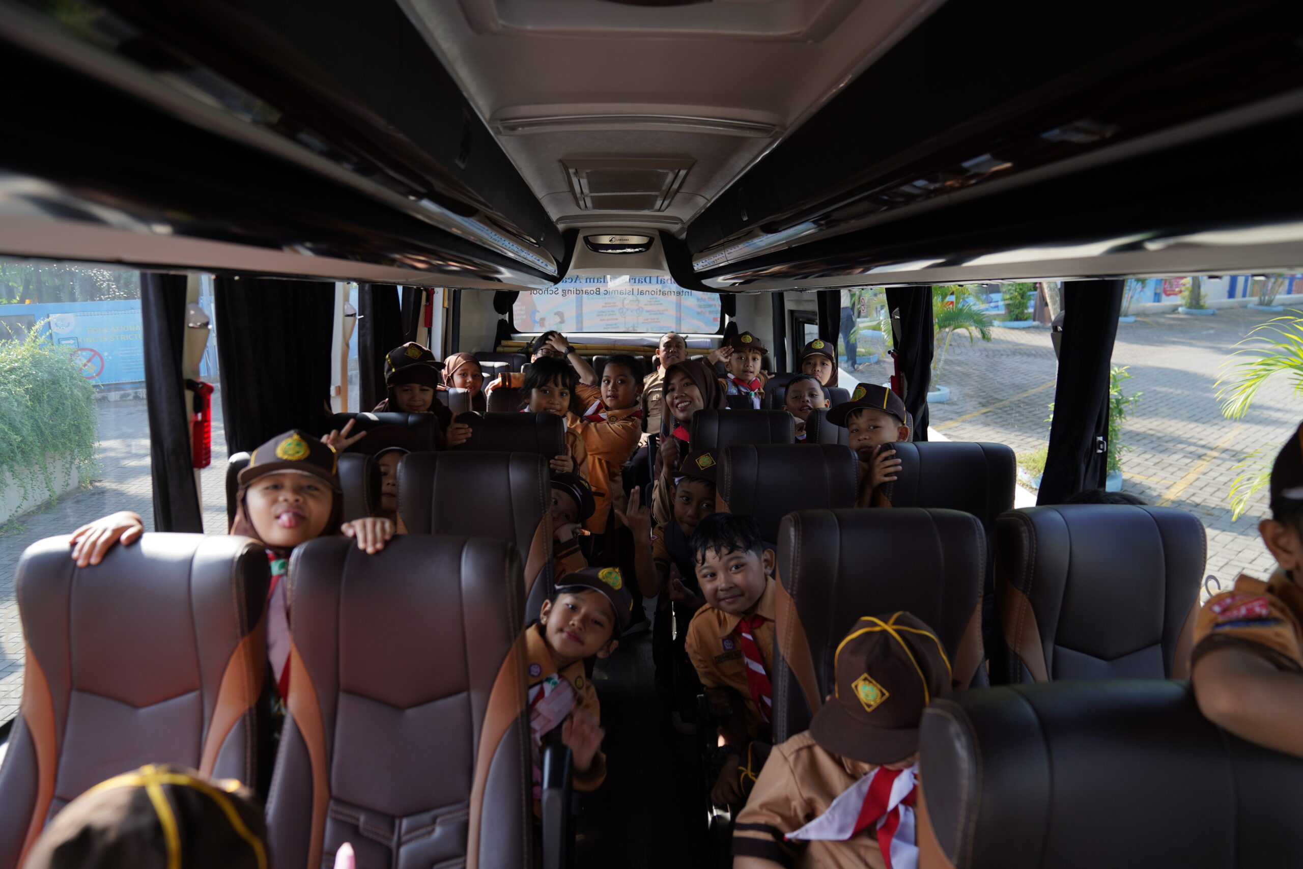 Potret keceriaan siswa-siswi di dalam bus menuju ke Kmpung Flory
