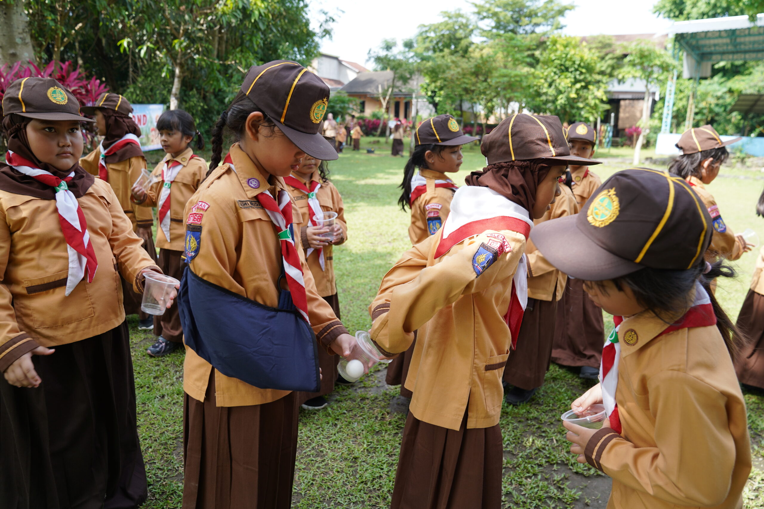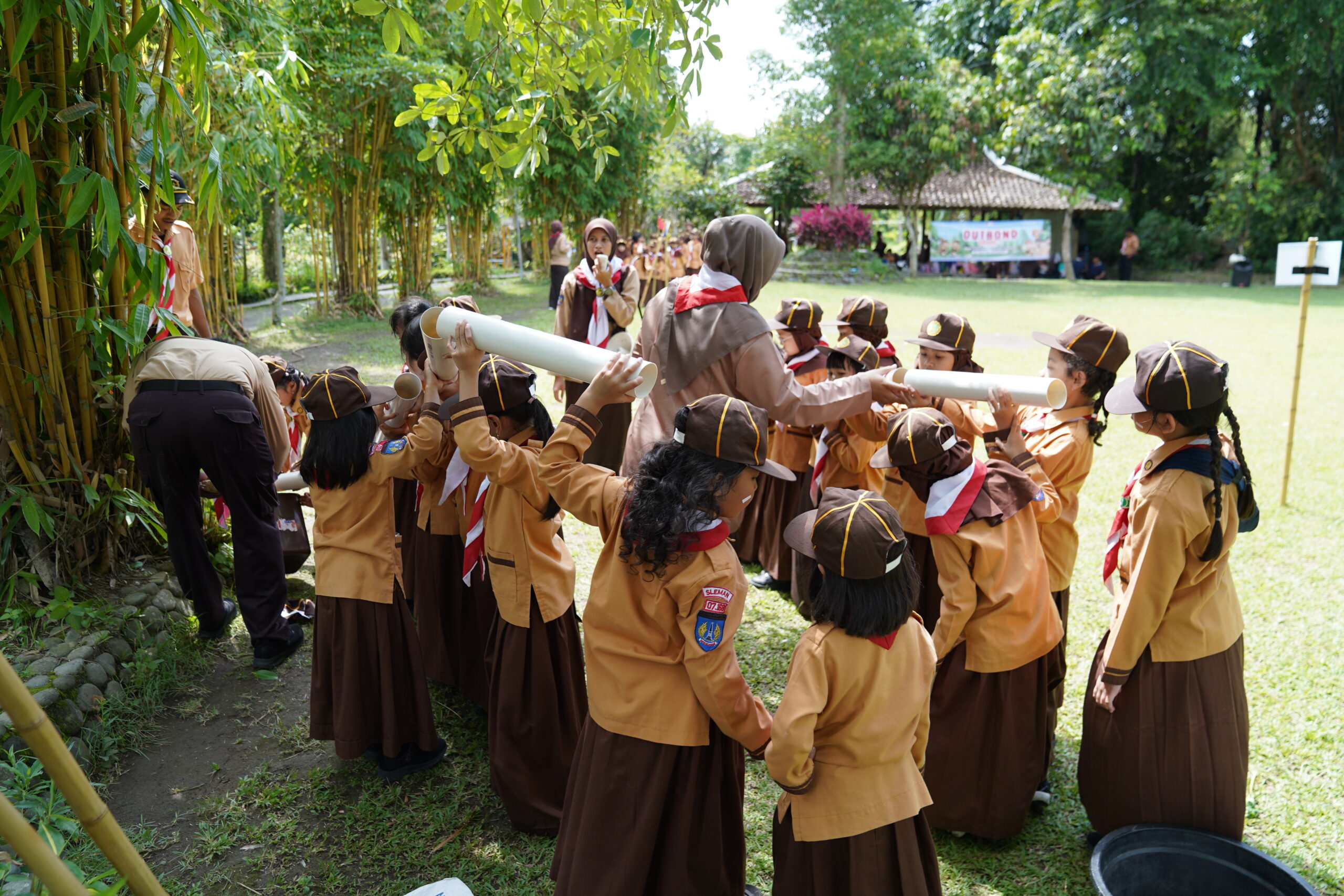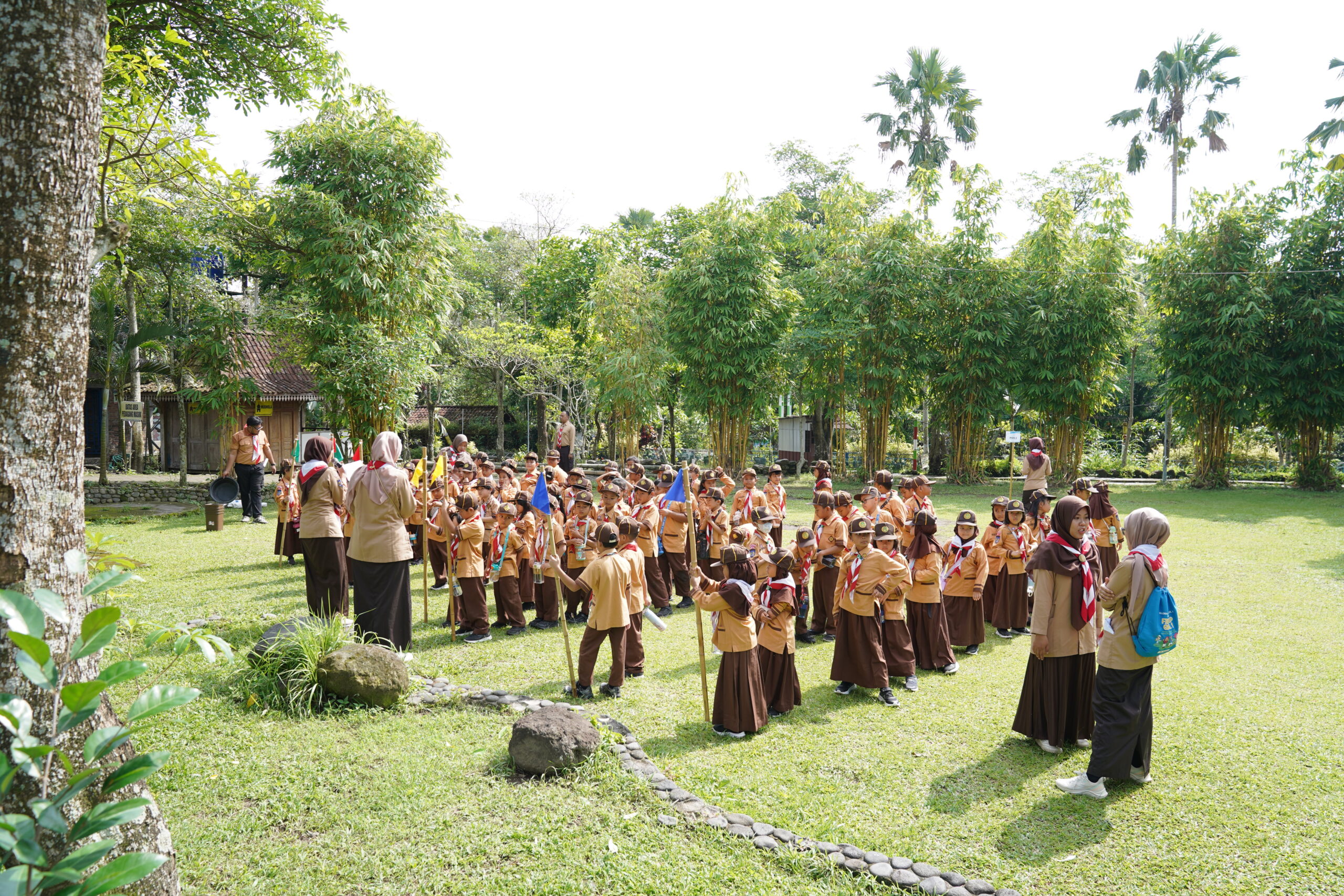 Seusai outbound di wahana air, pakaian cokelat siswa segera berganti ke pakaian olahraga berwarna biru yang menghangatkan. Berikutnya, mereka diarahkan ke pendopo untuk menyantap makan siang bersama, mengisi energi setelah serangkaian aktivitas yang melelahkan.