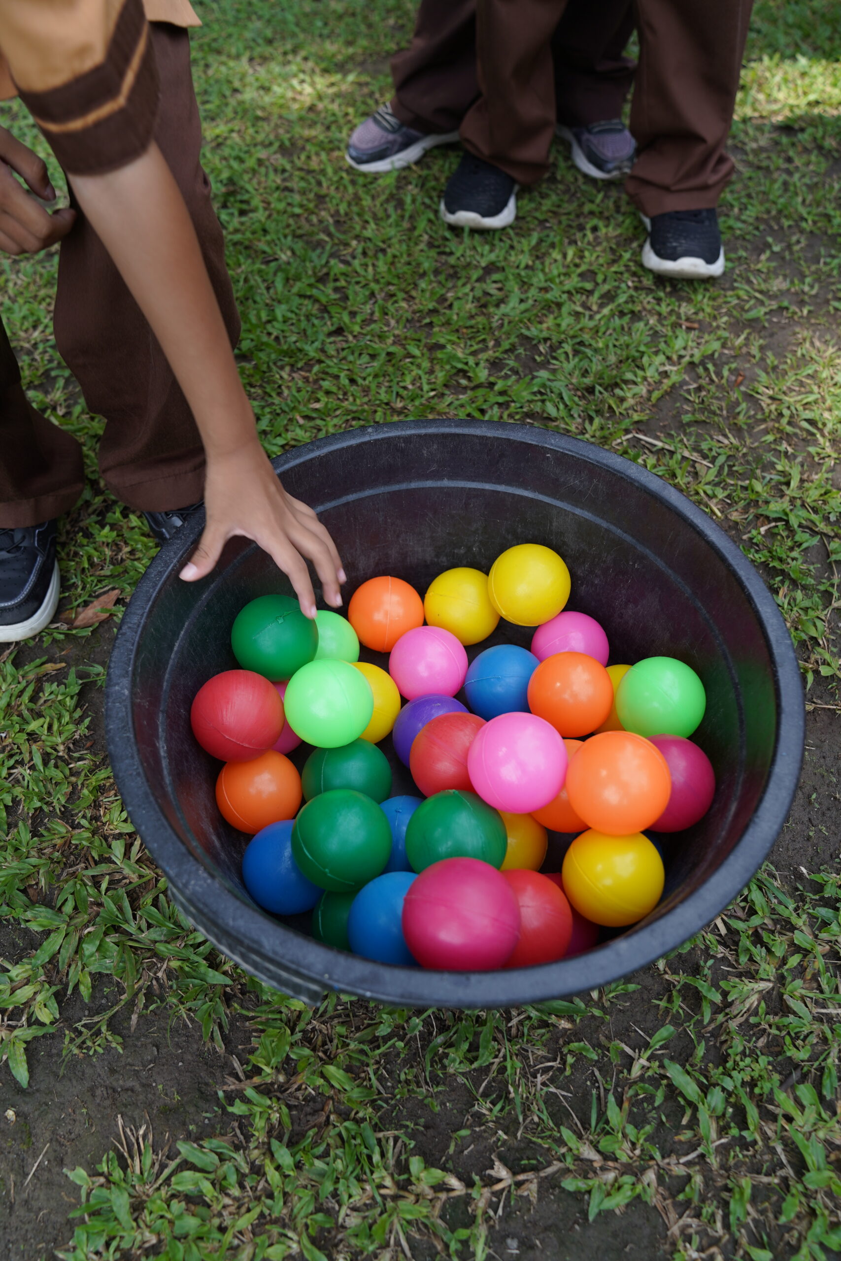 Paralon-paralon putih, bola plastik kecil, dan wadah tampak di pos berikutnya. Siswa diajak memperkuat kekompakan lewat kerja sama memasukkan bola ke wadah melalui paralon. Suasana begitu gegap gempita, siswa sibuk berseru agar bola tidak jatuh di tengah jalan.