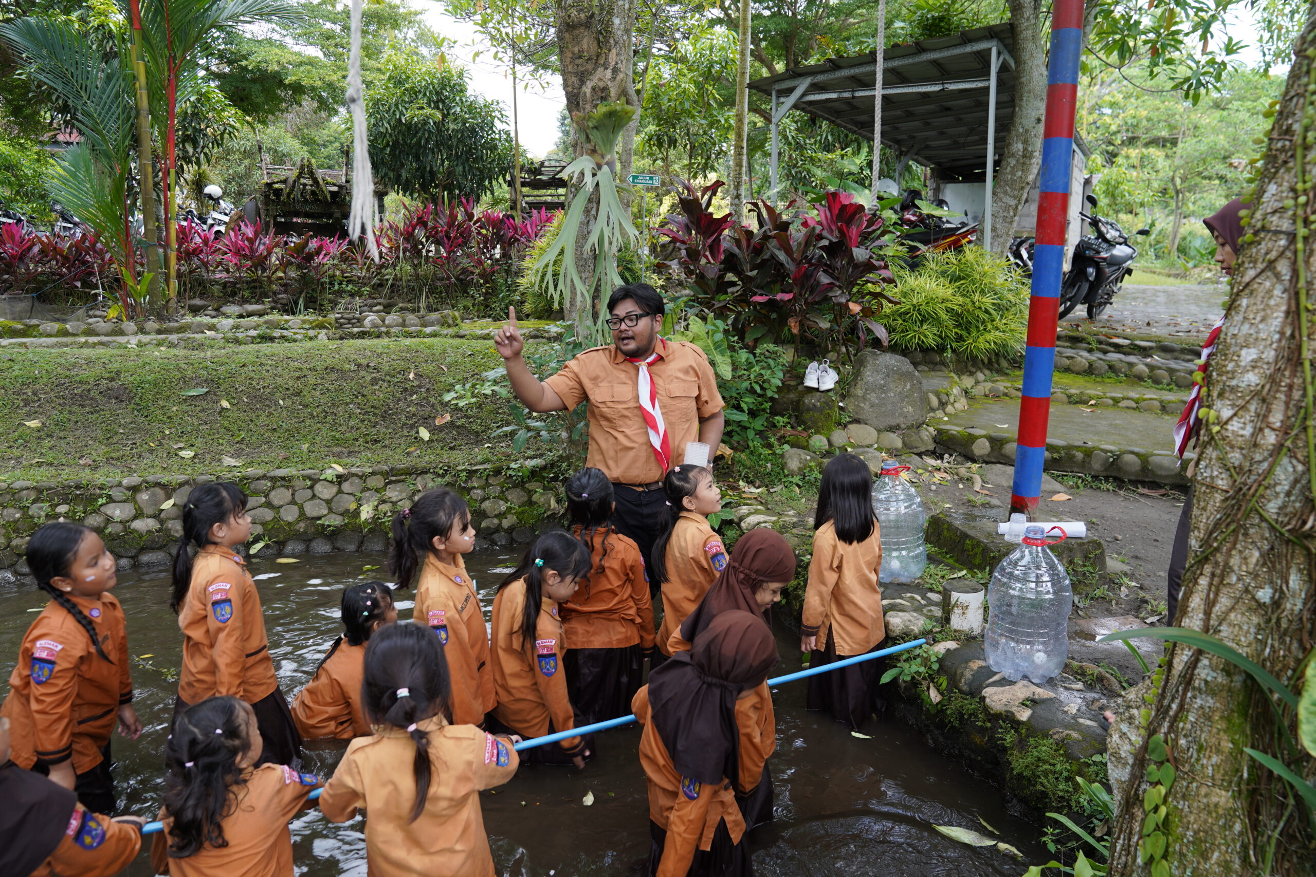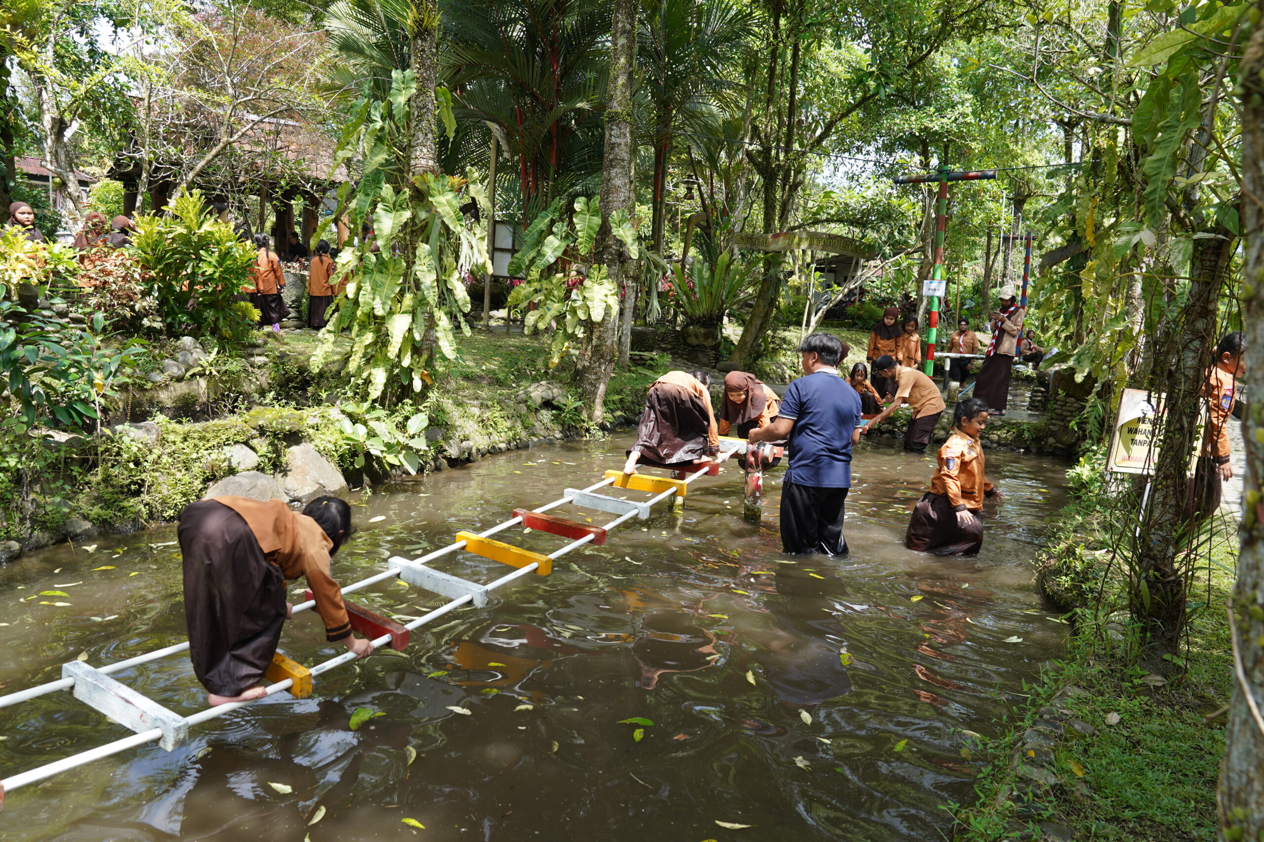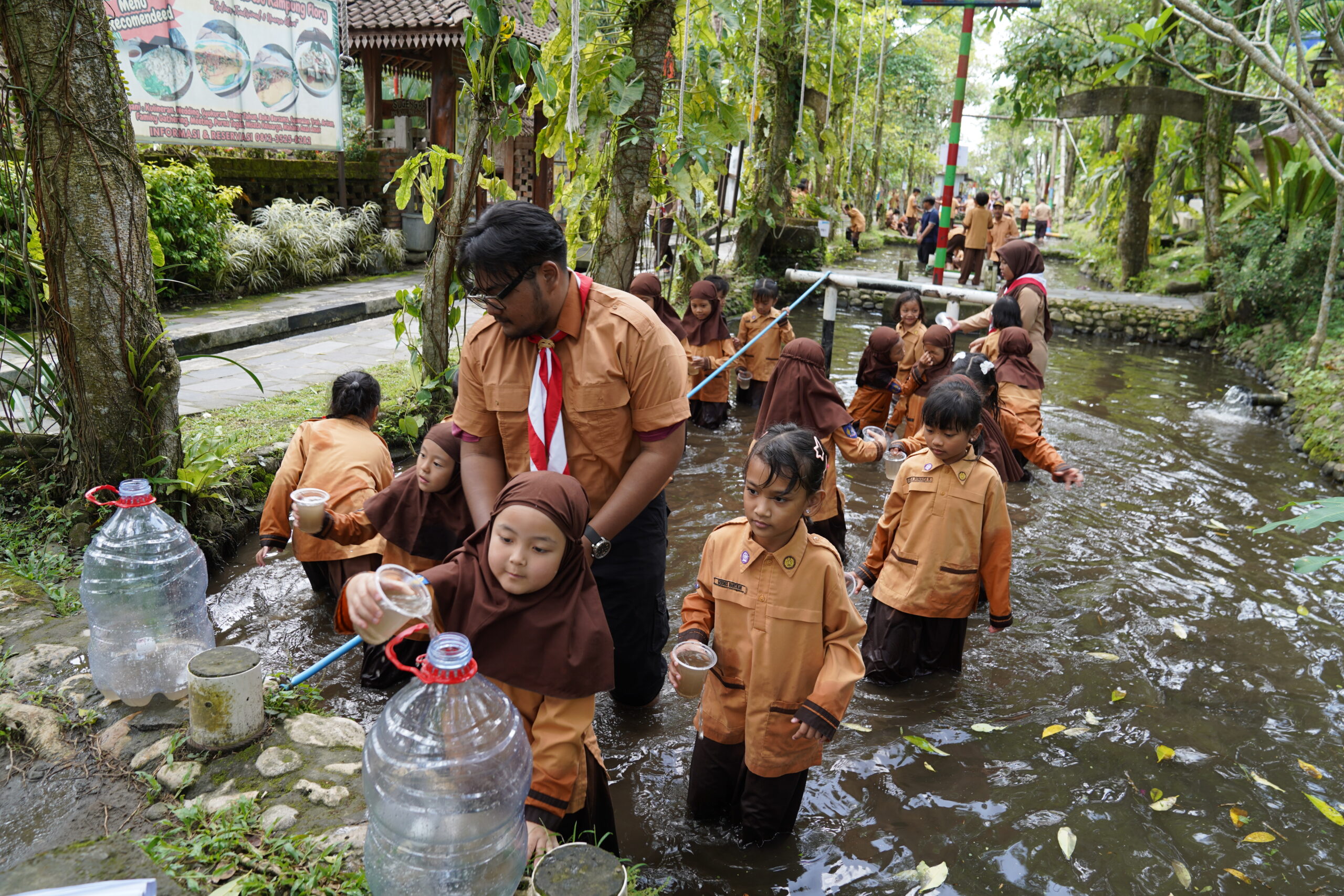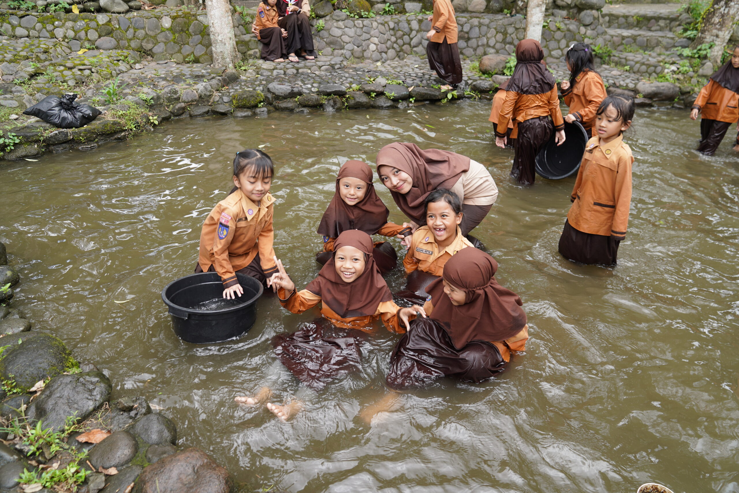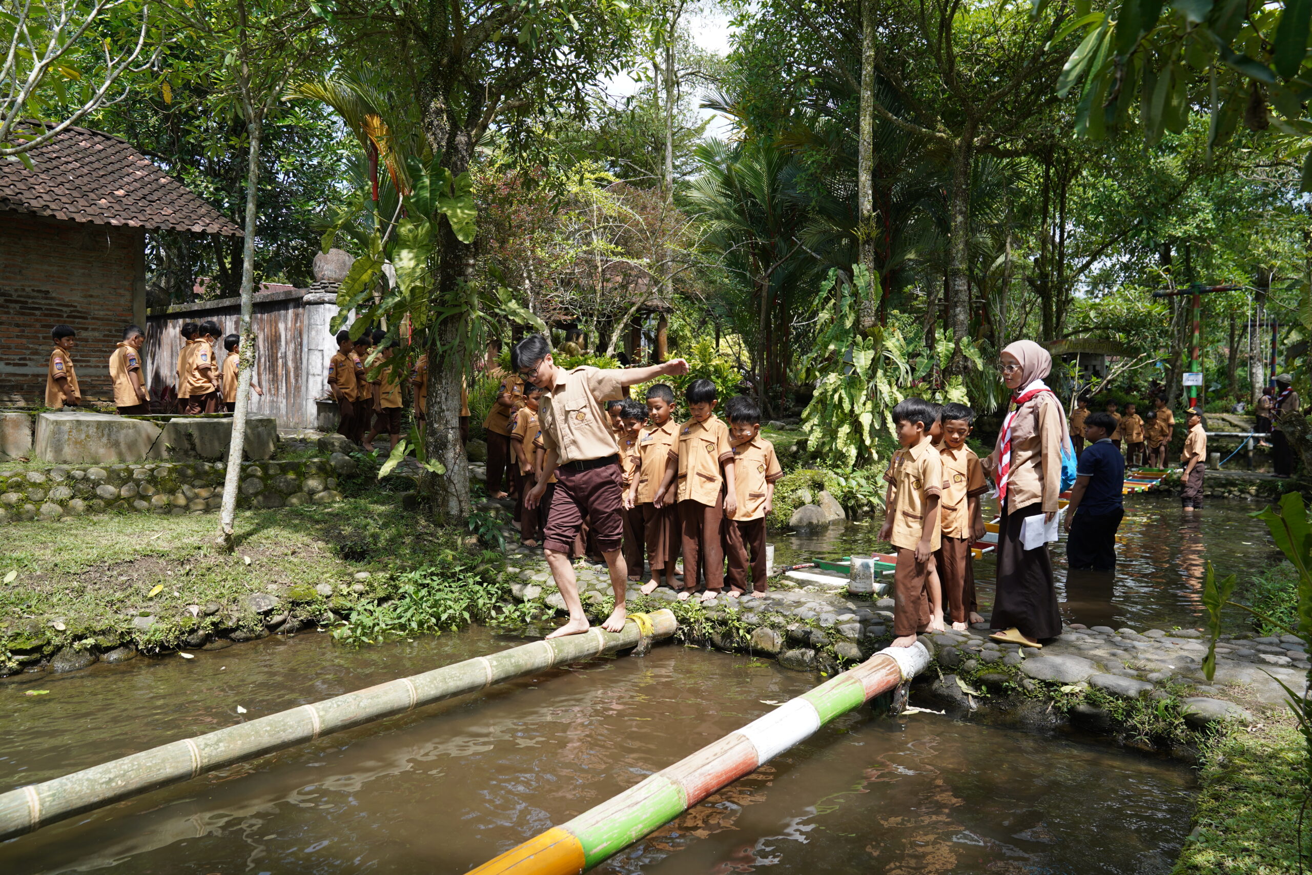 Selesai dengan wahana darat yang banyak menguji ketangkasan, kekompakan, dan koordinasi antarsiswa, mereka diajak memainkan permainan-permainan di air. Keceriaan semakin terasa. Bersentuhan dengan air membuat siswa kian antusias.