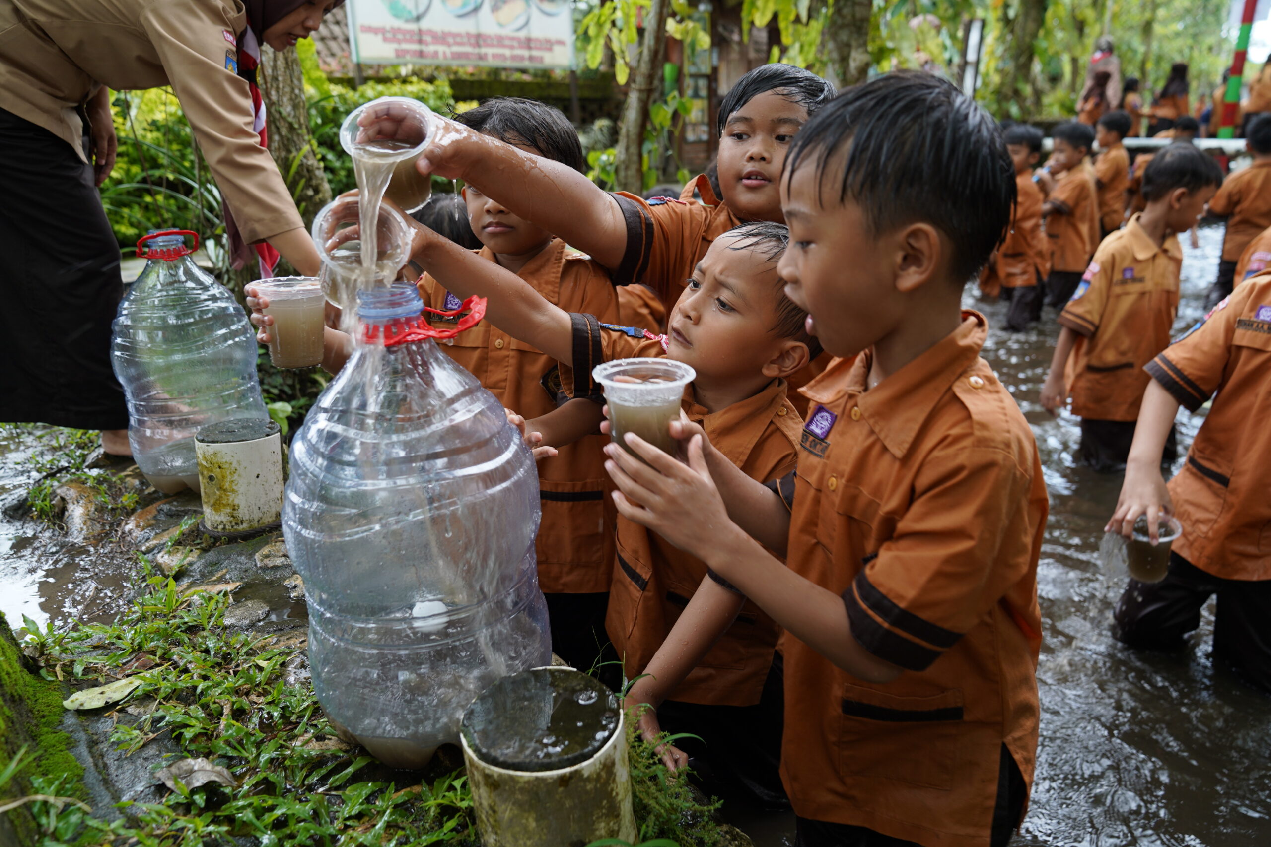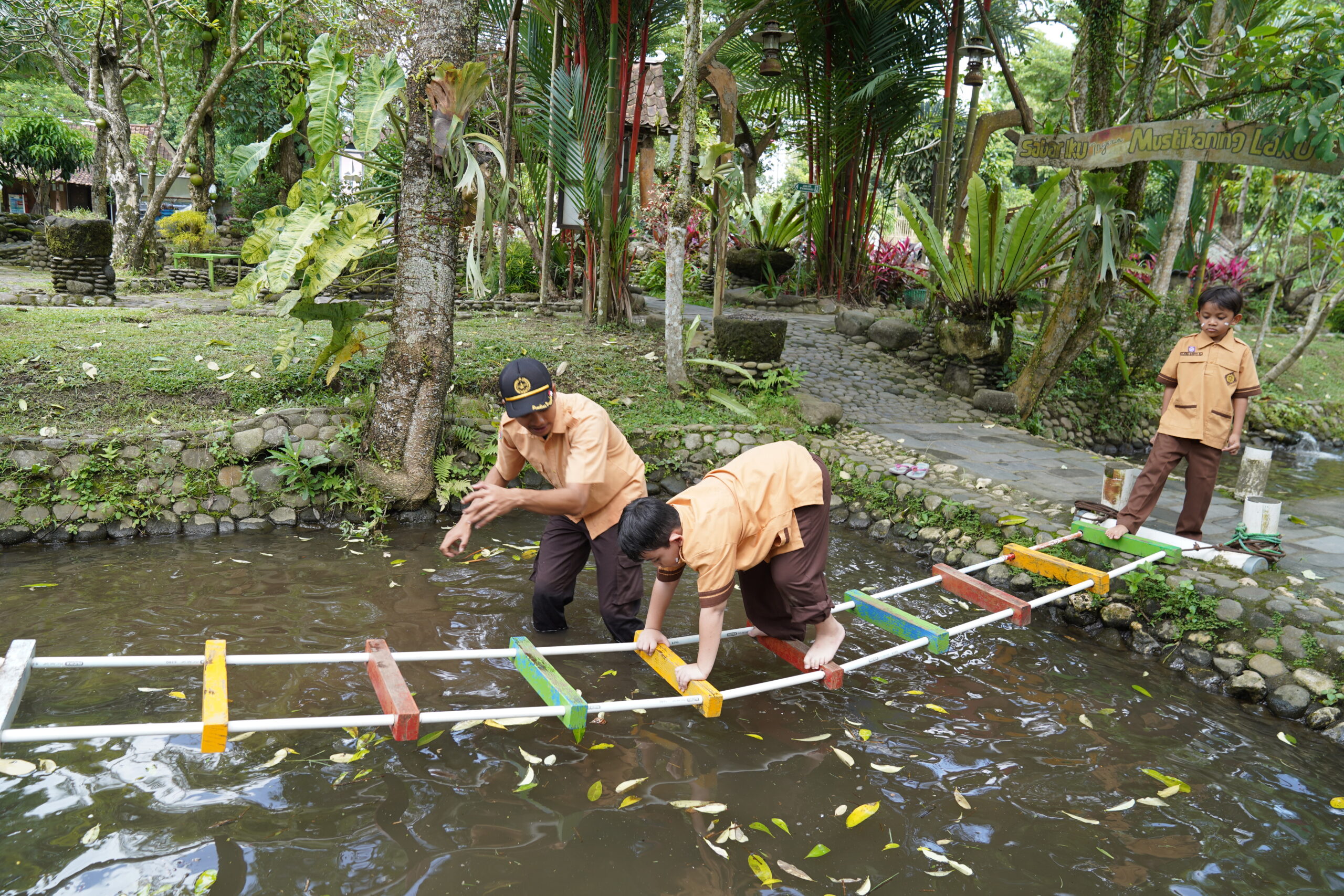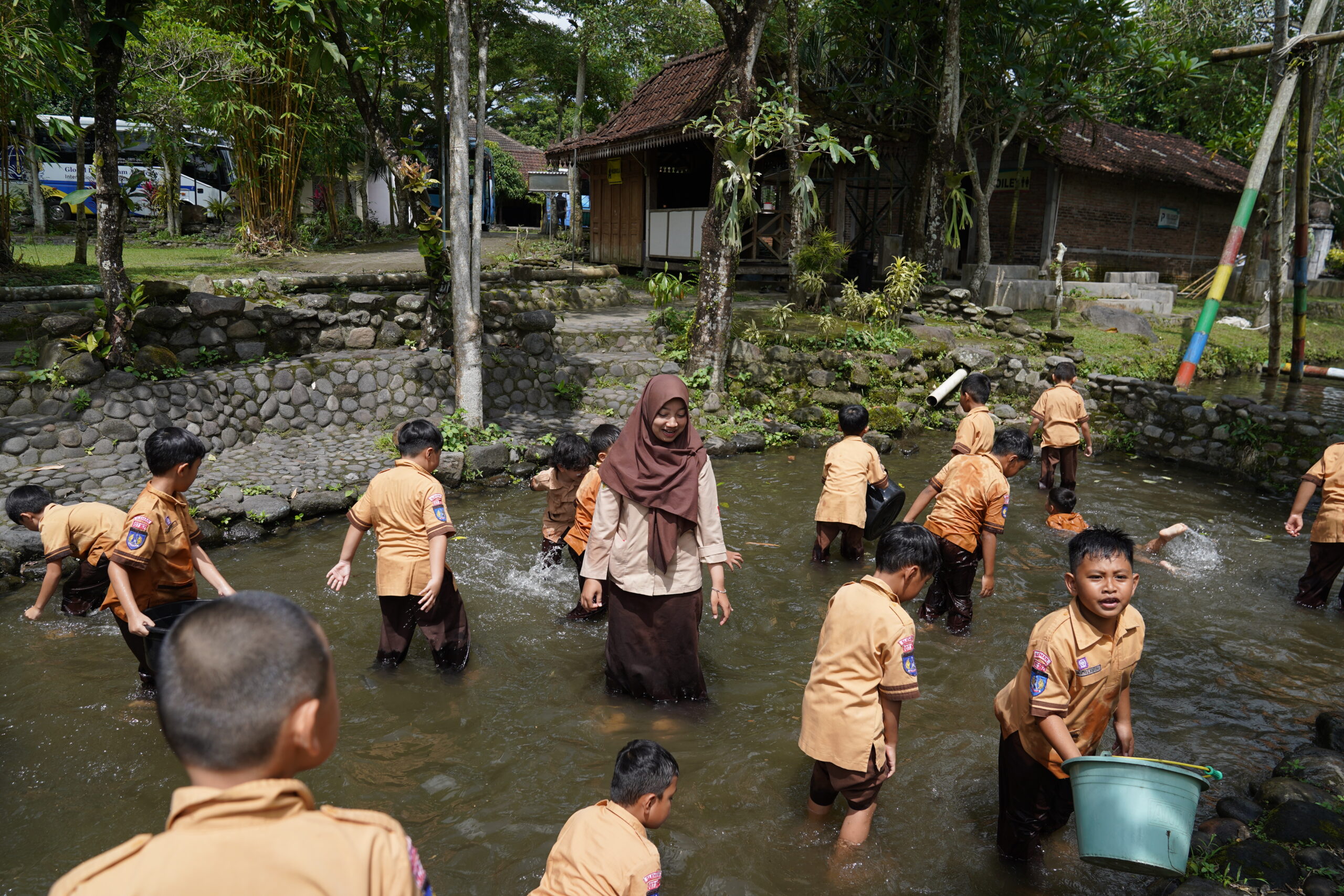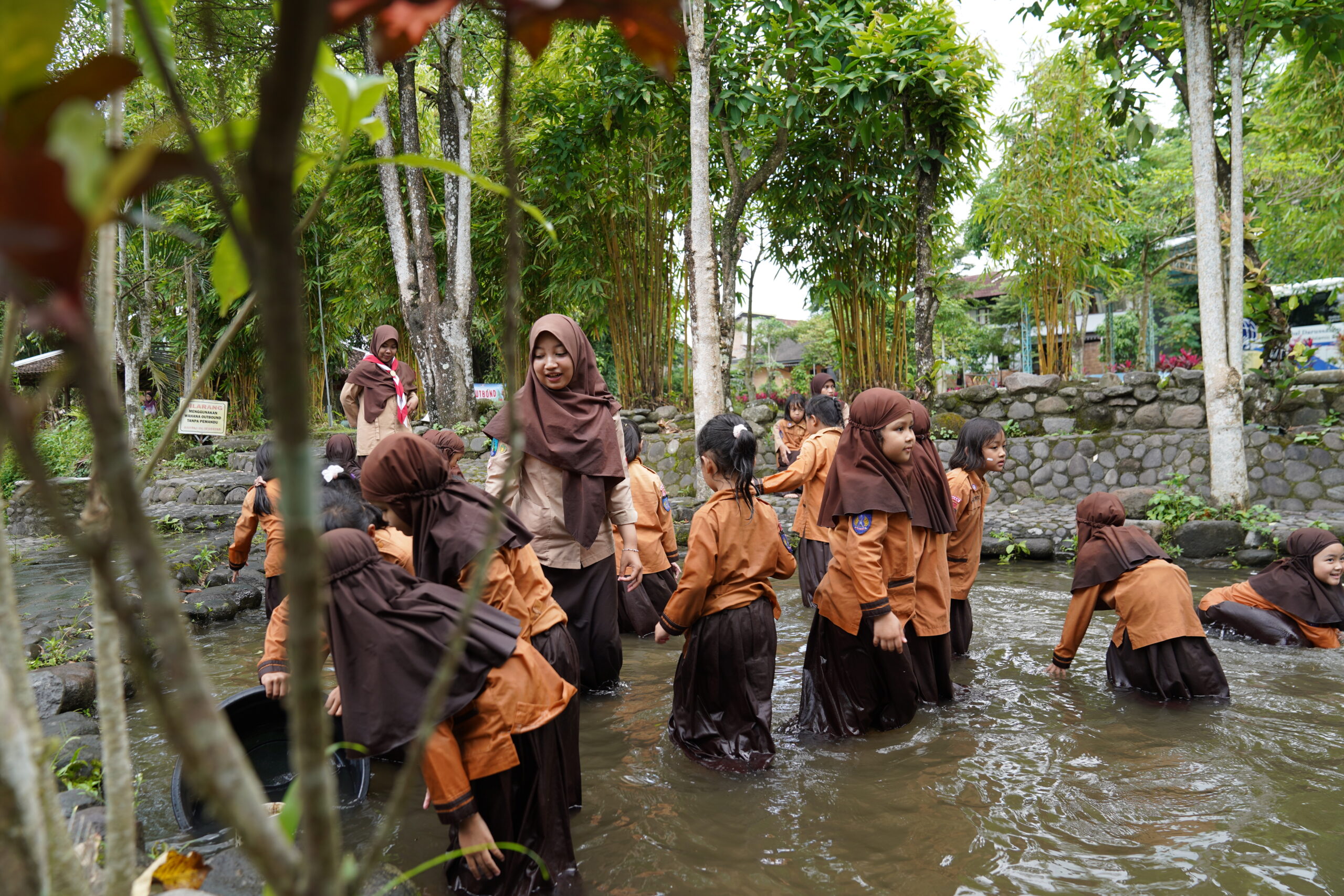 Selesai dengan wahana darat yang banyak menguji ketangkasan, kekompakan, dan koordinasi antarsiswa, mereka diajak memainkan permainan-permainan di air. Keceriaan semakin terasa. Bersentuhan dengan air membuat siswa kian antusias.